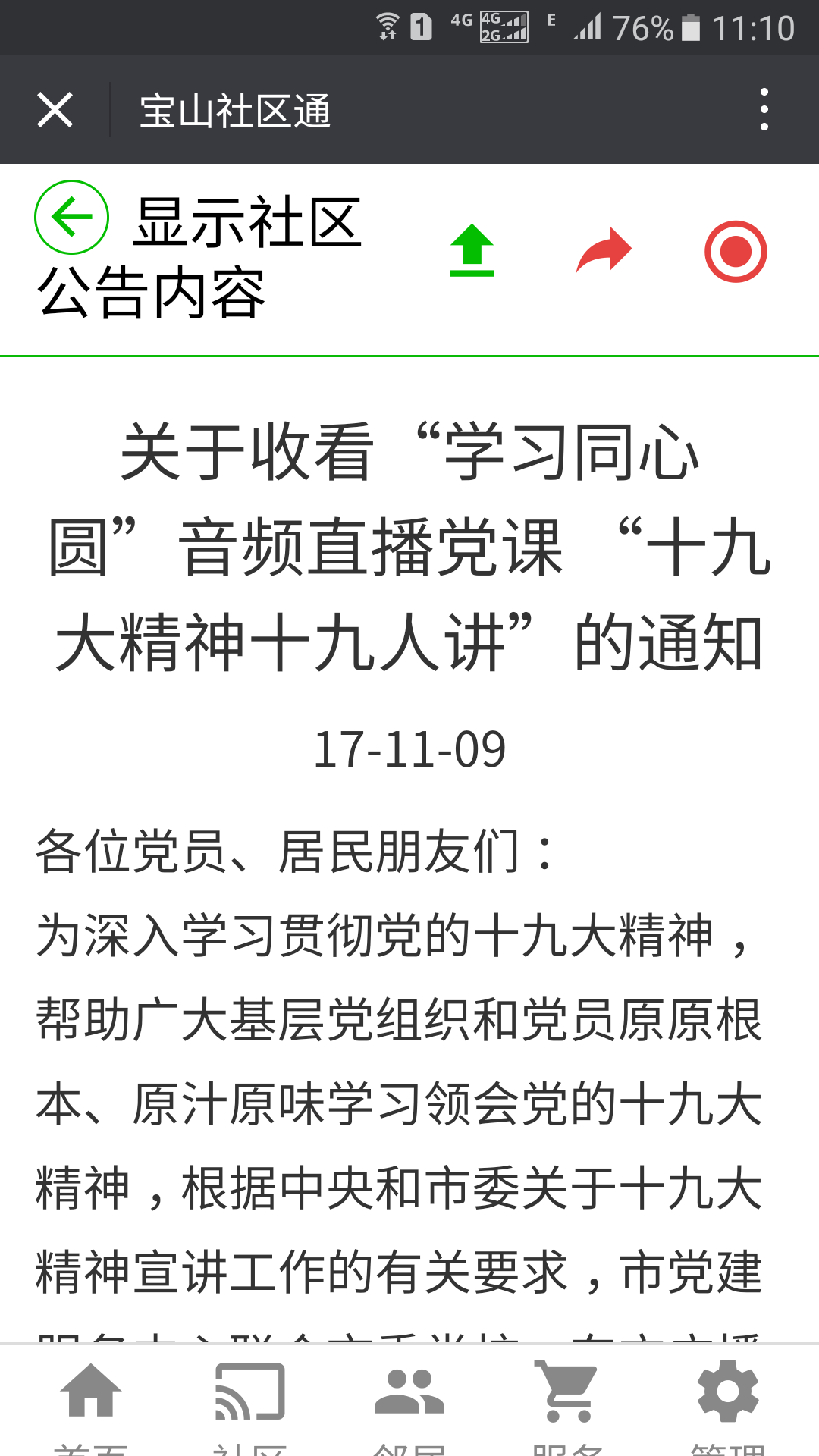 学习十九大精神体会(宝林九村11月份读书会活动)