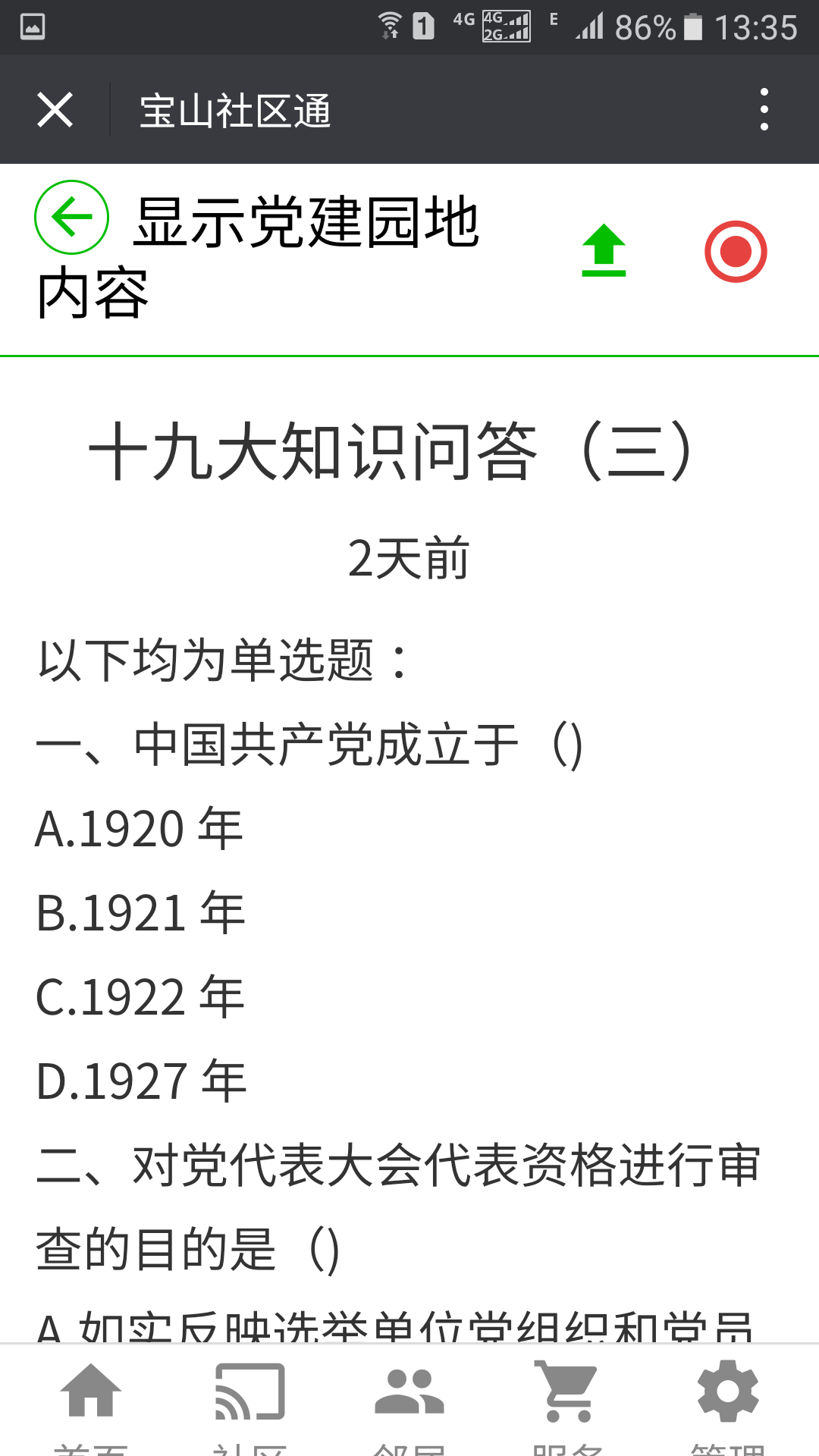 宝山五村:社区通上出试题 党员学习热情高